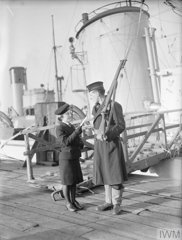 Wren Nancy Jackson asking the sentry’s permission to go on board a destroyer with a message, IWM