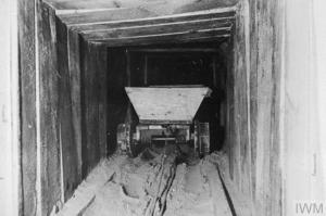 The usable tunnel, Harry, was hidden under a stove in hut 104. One year after construction began, the tunnel was finally completed in March 1944. Dug to a depth of 30ft to stay out of range of the microphones, the tunnel stretched towards the woods on the north edge of the camp.[5] The tunnel was in fact very sophisticated, including wooden boards taken from prisoner’s beds to hold it up, electric lighting to show the way, and an underground rope-operated trolly system to move the escapees.[6]
